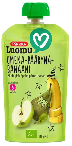 Pirkka Luomu omena-päärynä-banaanisose lapsille alkaen 6kk 110g