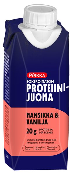Pirkka sokeroimaton proteiinijuoma 250ml mansikka & vanilja