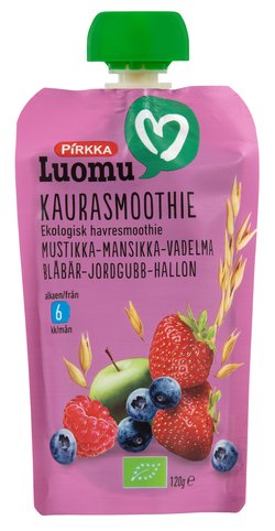 Pirkka Luomu kaurasmoothie mustikka-mansikka-vadelma 120g alkaen 6kk