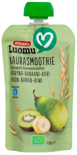 Pirkka Luomu kaurasmoothie päärynä-banaani-kiivi 120g alkaen 6kk