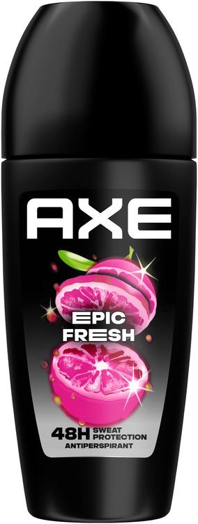 Päihitä hikoilu ja lisää vetovoimaasi Axe Epic Fresh roll-on antiperspirantti deodorantilla. Axe Epic Fresh antiperspirantti deodorantti roll-on ehkäisee hikoilua 48 tunnin ajan ja pitää kainalot kuivana riippumatta siitä, mihin polkusi johtaa tai kuka tulee vastaan. Eeppisen pitkäkestoinen greipin ja trooppisten ananasten tuoksu saa sinut tuoksumaan kutsuvalta pitkään. Axe Epic Fresh antiperspirantti deodorantti roll-on tuoksuu upealta ja pitää sinut viileänä koko päivän. Pysyt kuivana ja raikkaana, ja tilanne on aina hallinnassasi. Olet yksinkertaisesti voittaja-ainesta. Axe Epic Fresh antiperspirantti deodorantti roll-on tehty viemään vetovoimasi uudelle tasolle. Axe-deodorantissa on kaksitoiminen pro-scent-teknologia ja iholla 2 x nopeammin kuivuva koostumus*. Axe estää hikoilua, joten voit tuntea olosi raikkaaksi ja varmaksi jokainen kerta, kun rullaat Axea kainaloosi. Koko päivän. Koko yön. Ei väliä missä liikut, sinä olet valmis. Suojelemme sinua hieltä ja pahoilta hajuilta, jotta voit keskittyä siihen mitä teet, tai häneen, johon haluat tehdä vaikutuksen. Voit pyörittää elämääsi omaan tahtiisi. Me Axessa uskomme, että yksi vetovoiman avaimista on ikoninen tuoksu. Siksi olemme omistautuneet tarjoamaan sinulle kaikki työkalut varmistaaksemme, että sinä tuoksut parhaalta jokaisessa tilanteessa. Sinulla on aina käytössäsi vetovoimapelin ylivoimaiset ainekset alkaen suihkusaippuoista antiperspirantteihin ja vartalosuihkeista roll-oneihin. Näin se toimii: levitä ohut kerros molempiin kainaloihin ja ota kaikki irti 48 tunnin taatusta raikkaudesta ja vastustamattoman tuoksusta. Tervetuloa tulevaisuuteen. Se tuoksuu hämmästyttävän hyvältä. Kun käyt Axea, pidät samalla huolta itsestäsi ja planeetastamme. Axe Epic Fresh roll-on -pakkaukset on valmistettu kierrätettävistä materiaaleista. * vs. aiemmat alkoholittomat tuotteemme.
