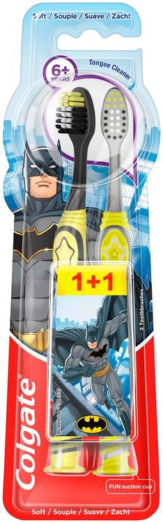 Tee hampaiden harjaamisesta hauskaa Colgate® Kids Batman ja Wonderwoman yli 6 v. hammasharjalla. Erityisesti suunniteltu yli 6-vuotiaille lapsille, joilla on sekä maitohampaita että pysyviä hampaita. Pieni pää ylettää helpommin kaikkialle lapsen suussa. Peukalotuki ja pyöristetty kahva takaavat mukavan otteen, kun taas imukuppi mahdollistaa helpon ja hauskan säilytyksen pystyasennossa. Valitsemalla lapsen lempihahmon autat ylläpitämään heidän kiinnostustaan hampaiden harjaamiseen.
