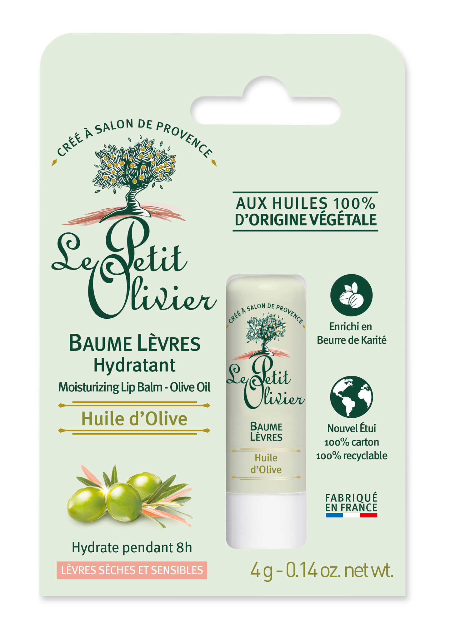 Valmistettu 100 % kasvipohjaisista öljyistä, Le Petit Olivier kosteuttava huulivoide sisältää kosteuttavia ominaisuuksia. Oliiviöljyllä ja sheavoilla rikastettu huulivoide tarjoaa huulille pitkäkestoista kosteutusta jopa 8 tunnin ajan.