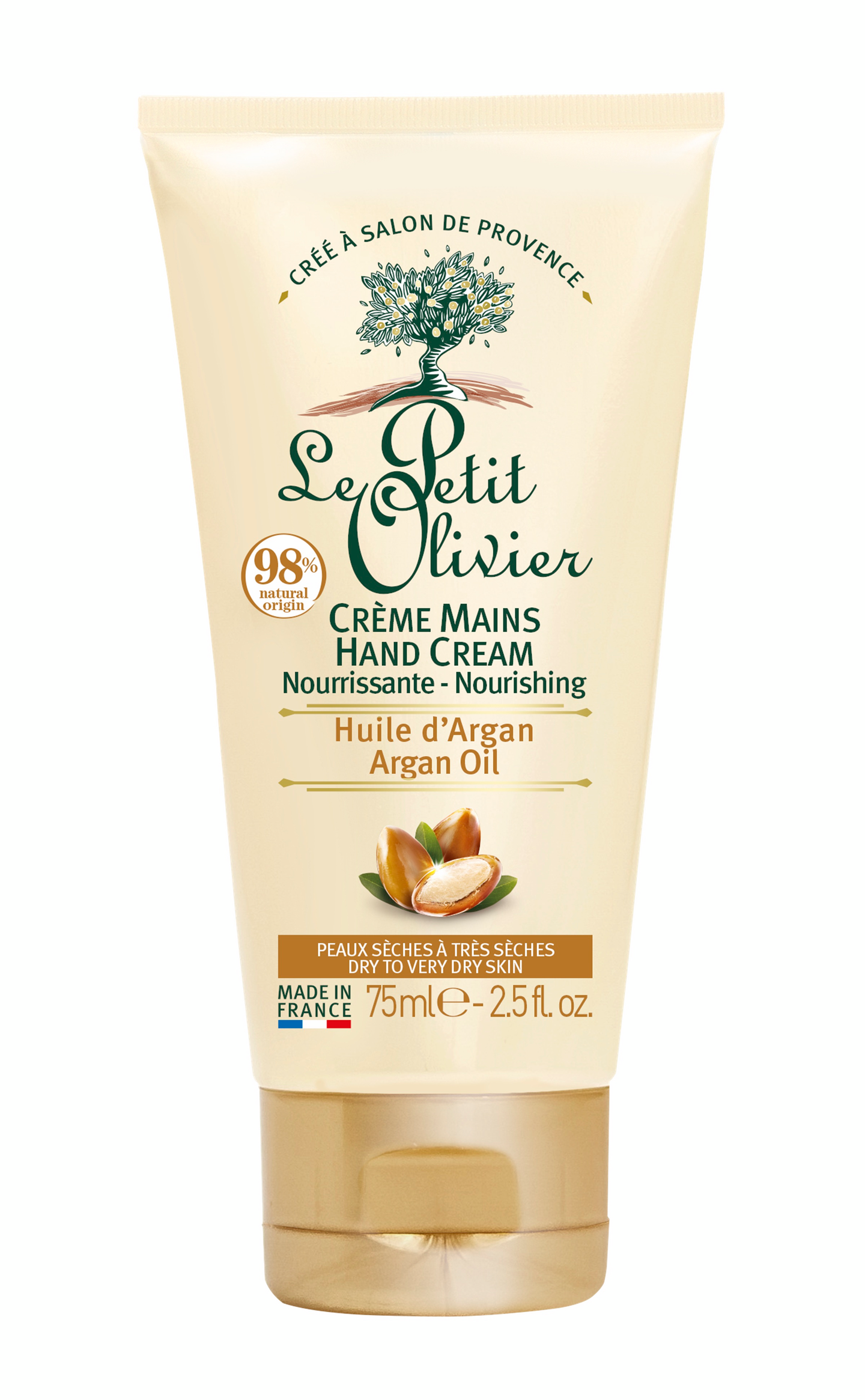 Le Petit Olivier ravitseva käsivoide arganöljyllä rauhoittaa ihoa ja tuo miellyttävän tunteen. Sheavoilla rikastettu ja ilman silikonia valmistettu, dermatologisesti testattu käsivoide hoitaa kuivaa ja erittäin kuivaa ihoa.