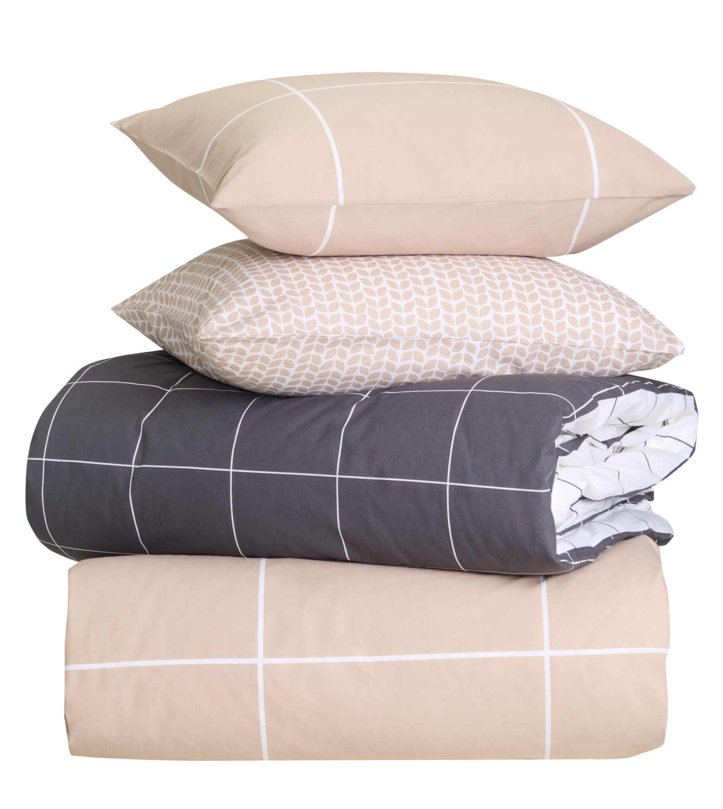 Pelkistetty ja rauhallinen kuosi. Pakkauksessa pussilakana 150x210 cm ja tyynyliina 55x60 cm. 100% puuvillaa. Pesu 60 asteessa. Pussilakanan yläosassa käsiaukot sekä alareunassa nappisuljenta. Lankatiheys 144. Kodintekstiileissä suosimme luonnonmateriaaleja, jotka ovat arjessa kestäviä ja helppohoitoisia. Myhome kodintekstiilit on suunniteltu Suomessa ja ne ovat tutkittuja ja turvallisia. Kaikissa myhome aluslakanoissa, pussilakanoissa sekä pyyhkeissä on OEKO-TEX® sertifiointi.