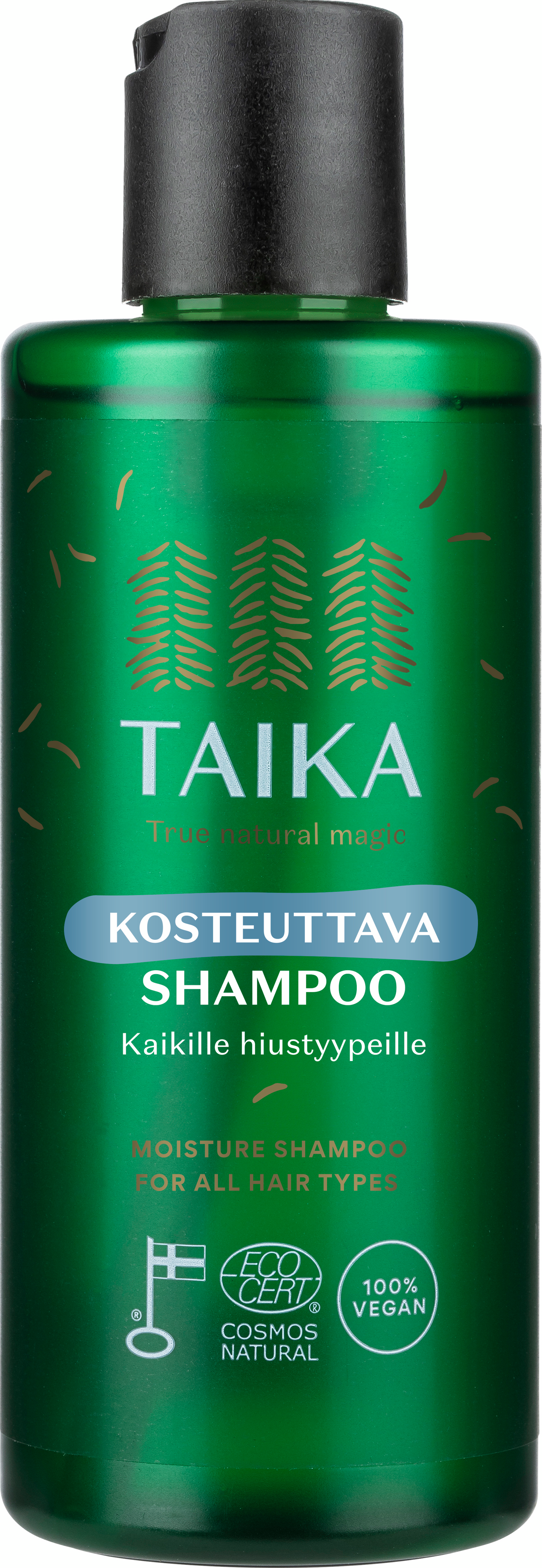 Taika Kosteuttava shampoo puhdistaa hiukset hellävaraisesti ja kosteuttaa niitä samalla, raviten hiuksia luonnollisesti. Miedosti vaahtoava koostumus sisältää luomunokkos- ja omenauutetta, jotka ravitsevat hiuksia, sekä kosteuttavaa betaiinia, joka vahvistaa niitä. Hiukset näyttävät elinvoimaisilta ja terveemmiltä. Sopii kaikille hiuslaaduille, erityisesti normaaleille ja kuiville hiuksille. Tämä vegaaninen shampoo on luonnonkosmetiikkaa parhaimmillaan – sillä sen koostumus perustuu huolellisesti valittuihin, luonnollisiin ainesosiin, jotka kosteuttavat tehokkaasti ja kunnioittaa luontoa. Ecocert Cosmos Natural -sertifioitu, valmistettu Suomessa.