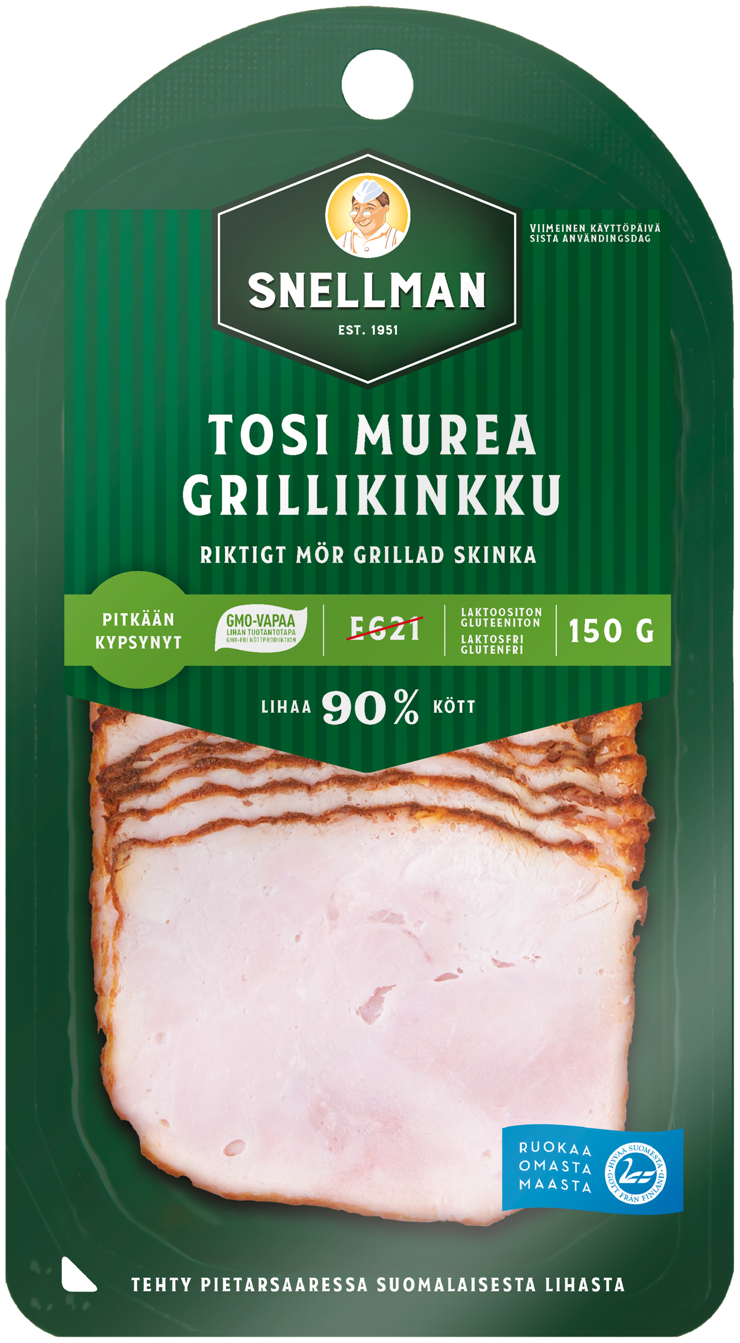 Tosi murea grillikinkku valmistetaan käyttäen uniikkia valmistustapaa, jota on hiottu Pietarsaaressa jo vuosien ajan. Grilliuunissa paahtamalla kypsennetty kinkku on syvän makuinen ja siinä on täyteläinen grillauksen maku - täysin ilman lisättyjä savuaromeja. Murea ja mehevä rakenne ja paljon kotimaista lihaa.