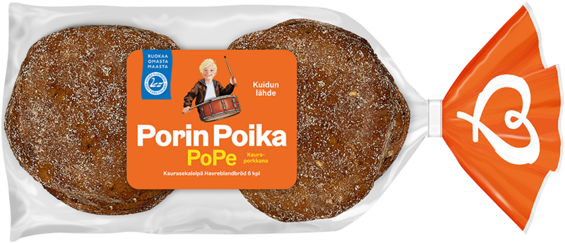 Porkkanan ja perunan maku sekä käteen sopiva pyöreä muoto yhdistyvät porilaisten leipureiden käsissä terveelliseen ja lempeään kauraisaan herkkuun. Porin Poika popepala leivotaan aina kotimaisista jauhoista ja on hyvä kuidunlähde.