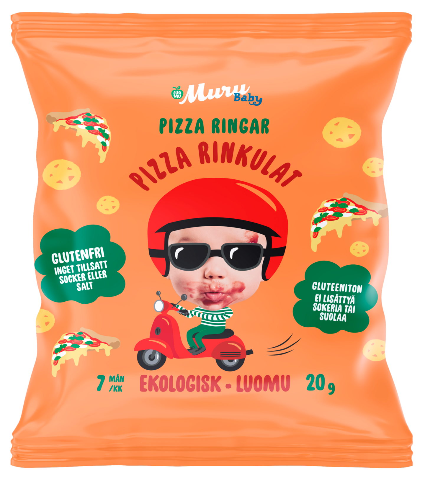Rinkula, rankula, on arki yhtä sirkusta! Ja hauskemmaksi vain muuttuu, kun mukana on maukas pizza maissi- tomaatti-oregano rinkula, jota koko perhe voi rouskutella! Meidän täysin vegaaniset ja gluteenittomat rinkulat eivät tarvitse suolaa tai sokeria ollakseen supermaistuvia. Vegaaninen, Gluteeniton, Maidoton, Lisäaineeton, Ei lisättyä sokeria tai suolaa