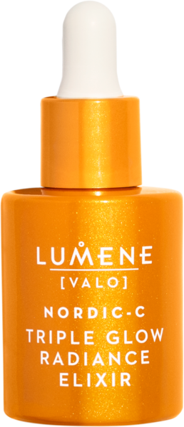 Anna ihollesi ennennäkemätöntä hehkua pohjoisen luonnon ja tieteen tehokkaalla yhdistelmällä. Nordic-C [Valo] Triple Glow Kirkastava Eliksiiri on tehokas antioksidanttiseerumi, joka kliinisesti testatusti* heleyttää, antaa intensiivistä kosteutusta ja suojaa ihon nuorekasta ulkonäköä. Ylellisen tuntuinen, silkkinen seerumi sisältää kolminkertaista antioksidanttitehoa: bioteknologian avulla kehitettyä pohjoisen lakan kantasolu-uutetta, C- ja E-vitamiineja sekä kapseloitua ferulahappoa. Tehokas koostumus on kehitetty ehkäisemään ja häivyttämään ensimmäisiä ikääntymisen merkkejä. Se saa ihon näyttämään elastisemmalta ja tasaisemman sävyiseltä sekä häivyttää juonteiden näkymistä. Iho näyttää täyteläisemmältä, sileämmältä ja säteilevältä. Vegaaninen koostumus sisältää sivuvirroista kehitettyjä, pohjoisen luonnosta peräisin olevia ja bioteknologian avulla kehitettyjä raaka-aineita. Pakkauksessa on käytetty kierrätettäviä materiaaleja. Nordic-C [Valo] Triple Glow Kirkastavalla eliksiirillä on kliinisesti testattu heleyttävä ja ihon elastisuutta parantava vaikutus* +72% välitöntä kosteutusta* Itsearviointitutkimuksessa** 100% Vastaajista: iho on kirkkaampi ja virkeämpi 100% Vastaajista: iho on nuorekkaan näköinen 100% Vastaajista: iho on sileämpi ja kimmoisa 100% Vastaajista suosittelisi tuotetta ystävälleen *Kiiniset testit, n=24-28, 4 viikon käytön jälkeen ** Itsearviointi, n=28, 4 viikon käytön jälkeen