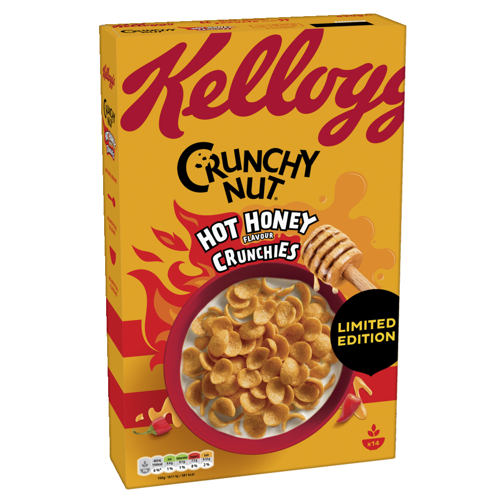 Crunchy Nut Hot Honey tuo aamuihin rohkean makuelämyksen! Rapea suutuntuma yhdistyy tulisen chilin lämmittävään potkuun ja hunajan pehmeään makeuteen. Vastustamaton yhdistelmä, joka herättää makunystyrät ja ihastuttaa jo ensimmäisestä lusikallisesta. Täydellinen niin kiireisiin aamuihin kuin herkutteluhetkiin päivän mittaan.