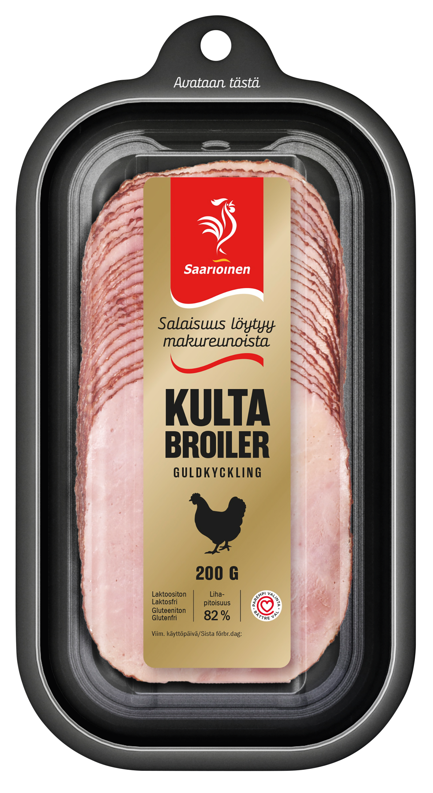 Valmistimme tämän murean ja maukkaan kokolihaleikkeleen broilerinfileestä. Kaikissa kultasarjan tuotteissamme on kauniin kullanruskea makureuna ja tuoksultaan ne ovat ihanan paahteisia. Salaisuus löytyy makureunoista!