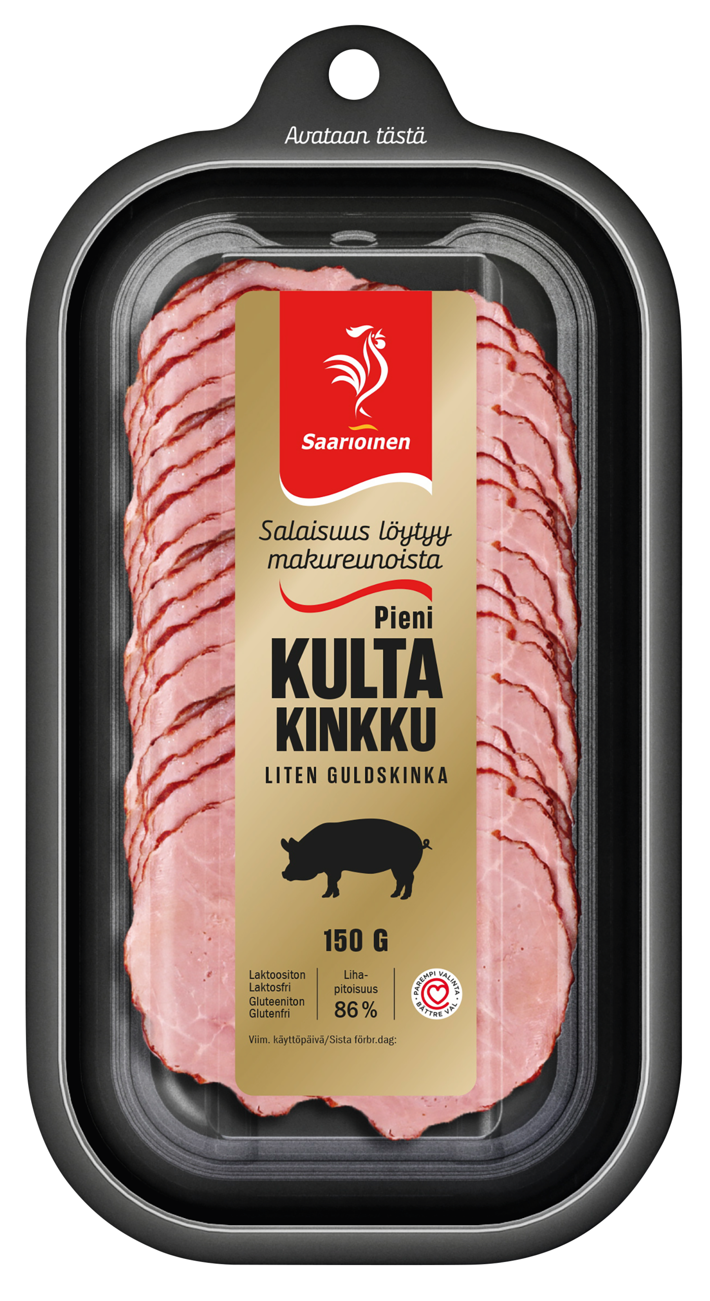 Valmistimme tämän lihaisan ja maukkaan kokolihaleikkeleen porsaan kinkusta ja maustoimme sen aavistuksella lipstikkaa ja meiramia. Kaikissa kultasarjan tuotteissamme on kauniin kullanruskea makureuna ja tuoksultaan ne ovat ihanan paahteisia. Salaisuus löytyy makureunoista!
