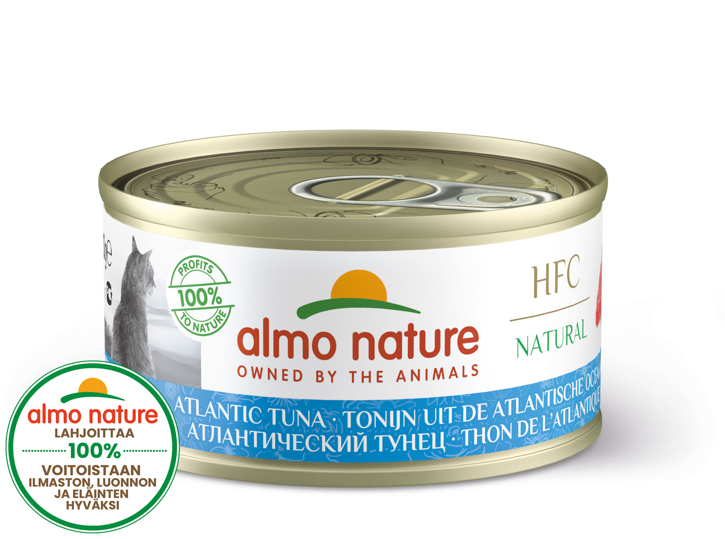 täydennysravinto kaikenikäisille kissoille - paljon tuoretta lihaa: 60-75% laadukasta, tuoretta lihaa, joka on alun perin tarkoitettu ihmisravinnoksi - luonnollinen: kypsytetty ja säilötty hellävaroen omassa liemessään, erityisen maukas ja sulava - laadukas ravintoainekoostumus: lempeä valmistusprosessi, joka takaa arvokkaiden, luonnollisten ravinteiden säilymisen - gluteeniton: sopii myös ruoka-aineyliherkille kissoille - maistuvaa: suuren lihapitoisuuden ja mehukkaan, lajinmukaisen ja luonnollisen reseptin ansiosta - ei sisällä keinotekoisia lisäaineita, kuten maku-, väri- tai säilöntäaineita Almo Nature oli markkinoiden ensimmäinen täysin luonnollinen lemmikkieläinten ruoka. Laadukkaat raaka-aineet, joista tärkeimpänä liha tai kala, on huolella valittu ja hellävaraisesti valmistettu. Vuodesta 2018 alkaen 100% Almo Naturen voitoista on lahjoitettu luonnon hyväksi. Monipuolinen ruoka vaativillekin kissoille. Almo Nature sisältää paljon tuoreita liha- ja kalapaloja (vähintään 60 %), jotka on alun perin tarkoitettu ihmisravinnoksi. Gluteeniton ruoka on kypsytetty varovasti omassa liemessään, jolloin sen sisältämät proteiinit ja hivenaineet säilyvät luonnollisella tavalla. Näin ruoassa on arvokas ravintoainekoostumus, joka vastaa kissasi fysiologisia tarpeita. Valmistusmenetelmä takaa lisäksi hyvän sulavuuden ja parhaan maittavuuden. Jopa erityisen vaativat tai herkät kissat voivat löytää lempiruokansa! Kokonaisvaltainen, luonnollisesti puhdas ja maukas lisäravinto, joka ei sisällä keinotekoisia lisäaineita, kuten maku-, väri- tai säilöntäaineita.