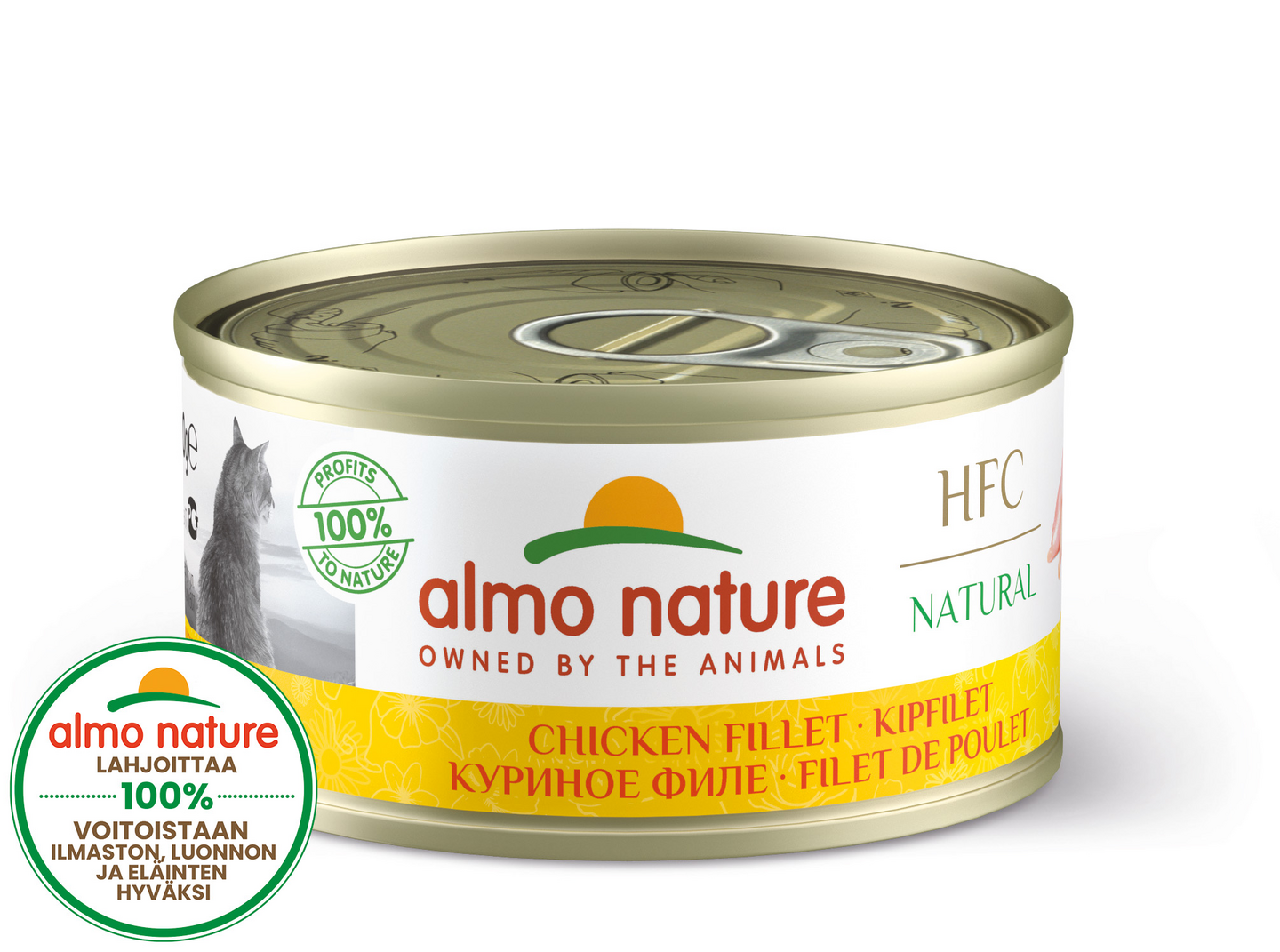 täydennysravinto kaikenikäisille kissoille - paljon tuoretta lihaa: 60-75% laadukasta, tuoretta lihaa, joka on alun perin tarkoitettu ihmisravinnoksi - luonnollinen: kypsytetty ja säilötty hellävaroen omassa liemessään, erityisen maukas ja sulava - laadukas ravintoainekoostumus: lempeä valmistusprosessi, joka takaa arvokkaiden, luonnollisten ravinteiden säilymisen - gluteeniton: sopii myös ruoka-aineyliherkille kissoille - maistuvaa: suuren lihapitoisuuden ja mehukkaan, lajinmukaisen ja luonnollisen reseptin ansiosta - ei sisällä keinotekoisia lisäaineita, kuten maku-, väri- tai säilöntäaineita Almo Nature oli markkinoiden ensimmäinen täysin luonnollinen lemmikkieläinten ruoka. Laadukkaat raaka-aineet, joista tärkeimpänä liha tai kala, on huolella valittu ja hellävaraisesti valmistettu. Vuodesta 2018 alkaen 100% Almo Naturen voitoista on lahjoitettu luonnon hyväksi. Monipuolinen ruoka vaativillekin kissoille. Almo Nature sisältää paljon tuoreita liha- ja kalapaloja (vähintään 60 %), jotka on alun perin tarkoitettu ihmisravinnoksi. Gluteeniton ruoka on kypsytetty varovasti omassa liemessään, jolloin sen sisältämät proteiinit ja hivenaineet säilyvät luonnollisella tavalla. Näin ruoassa on arvokas ravintoainekoostumus, joka vastaa kissasi fysiologisia tarpeita. Valmistusmenetelmä takaa lisäksi hyvän sulavuuden ja parhaan maittavuuden. Jopa erityisen vaativat tai herkät kissat voivat löytää lempiruokansa! Kokonaisvaltainen, luonnollisesti puhdas ja maukas lisäravinto, joka ei sisällä keinotekoisia lisäaineita, kuten maku-, väri- tai säilöntäaineita.