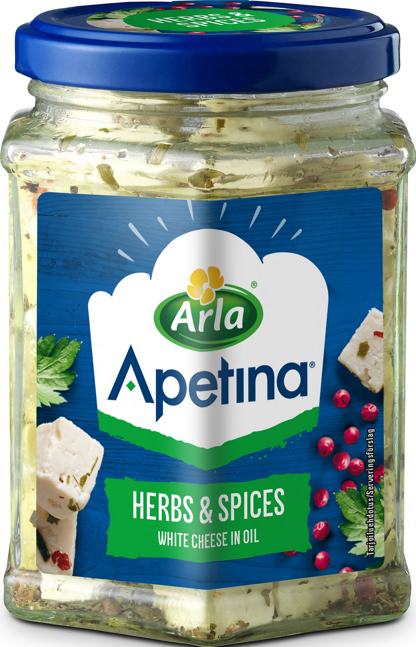 Arla Apetina juustokuutiot öljyssä 265g/150g yrtit ja mausteilla