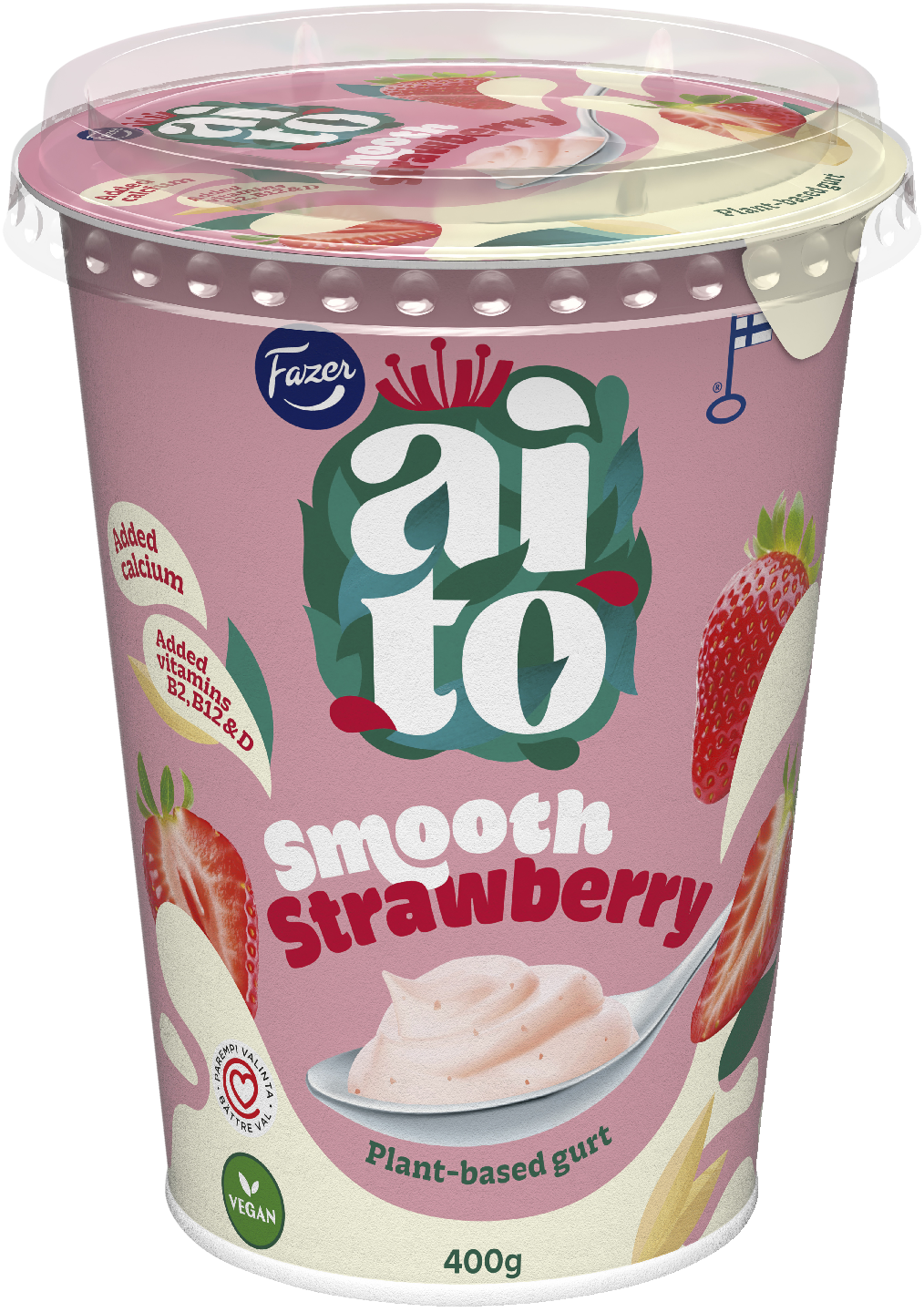 Fazer Aito Kasvipohjainen gurtti Mansikka yhdistää mansikan makeuden ja kauran pehmeyden herkulliseksi välipalaksi. Sileän samettinen koostumus sekä kalsiumin ja B2-, B12- ja D-vitamiinien täydennys tekevät siitä mainion valinnan arkeen. Tuote on valmistettu Suomessa kotimaisesta kaurasta, ja sillä on Avainlippu. Sydänmerkki osoittaa, että se on ravitsemuksellisesti parempi valinta omassa tuoteryhmässään.