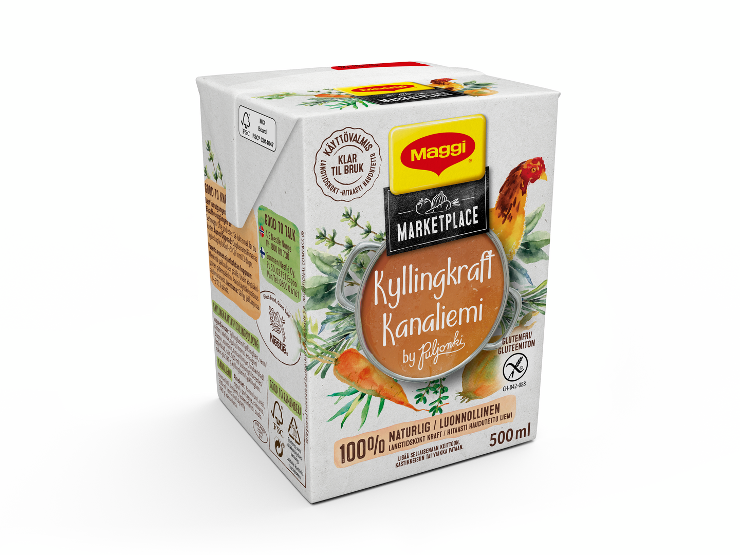 Valmista lempiruokiasi ja lisää joukkoon MAGGI -kanaliemi. Tämä käyttövalmis ja 100 % luonnollinen kanaliemi on valmistettu MAGGIn tehtaalla Juuassa. Siinä yhdistyvät laadukkaat, pitkään haudutetut ainesosat, jotka vievät ruokasi maut aivan uudelle tasolle. Käyttövalmis, lisää vain ruokaan valmistusvaiheessa. Täydellinen kaikenlaisiin ruokiin, kuten keittoihin, patoihin, kastikkeisiin, risottoon tai pastaan. Gluteeniton ja laktoositon! Pakattu kierrätettävään 500 ml tetrapakkaukseen. Säilytä avaamisen jälkeen jääkaapissa ja käytä muutaman päivän kuluessa tai pakasta esim. jääpalamuoteissa. Hae ruokainspiraatiota Instagram-tililtämme Instagram.com/maggi_suomi
