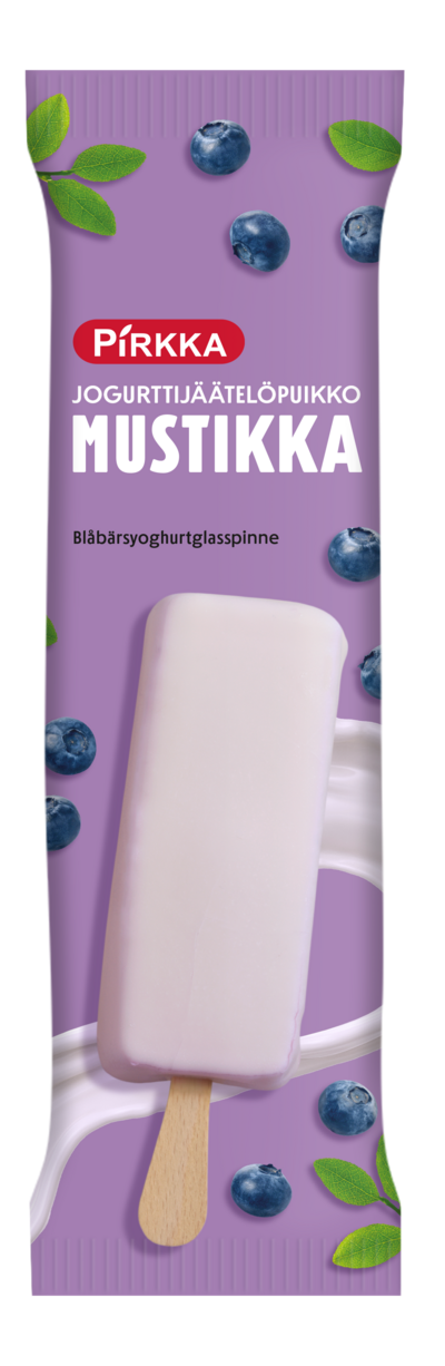 Pirkka jogurttijäätelöpuikkossa yhdistyy jogurttijäätelön raikkaus ja mustikan marjaisa maku sekä herkullinen jogurttikuorrutus. Sopii pieneen hemmotteluhetkeen.
