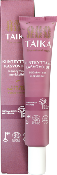 Taika Kiinteyttävä Kasvovoide tasapainottaa ihon mikrobiomia ja edistää sen luonnollista uusiutumista ainutlaatuisen suomalaisen Re-connecting Nature® mikrobiuutteen voimalla. Tämä ravitseva voide vahvistaa ihon suojamuuria, rauhoittaa punoitusta ja vähentää ärsytystä. Lakan siemenuute parantaa ihon elastisuutta, ja hyaluronihappo ylläpitää ihon kosteustasapainoa, jättäen sen kimmoisaksi ja pehmeäksi. Täyteläinen ja tehokas kasvovoide on täydellinen valinta ikääntyvälle iholle. Vegaaninen luonnonkosmetiikkatuote ja Ecocert Cosmos Natural -sertifioitu, joka sopii kaikille ihotyypeille – myös herkälle iholle. Valmistettu Suomessa.