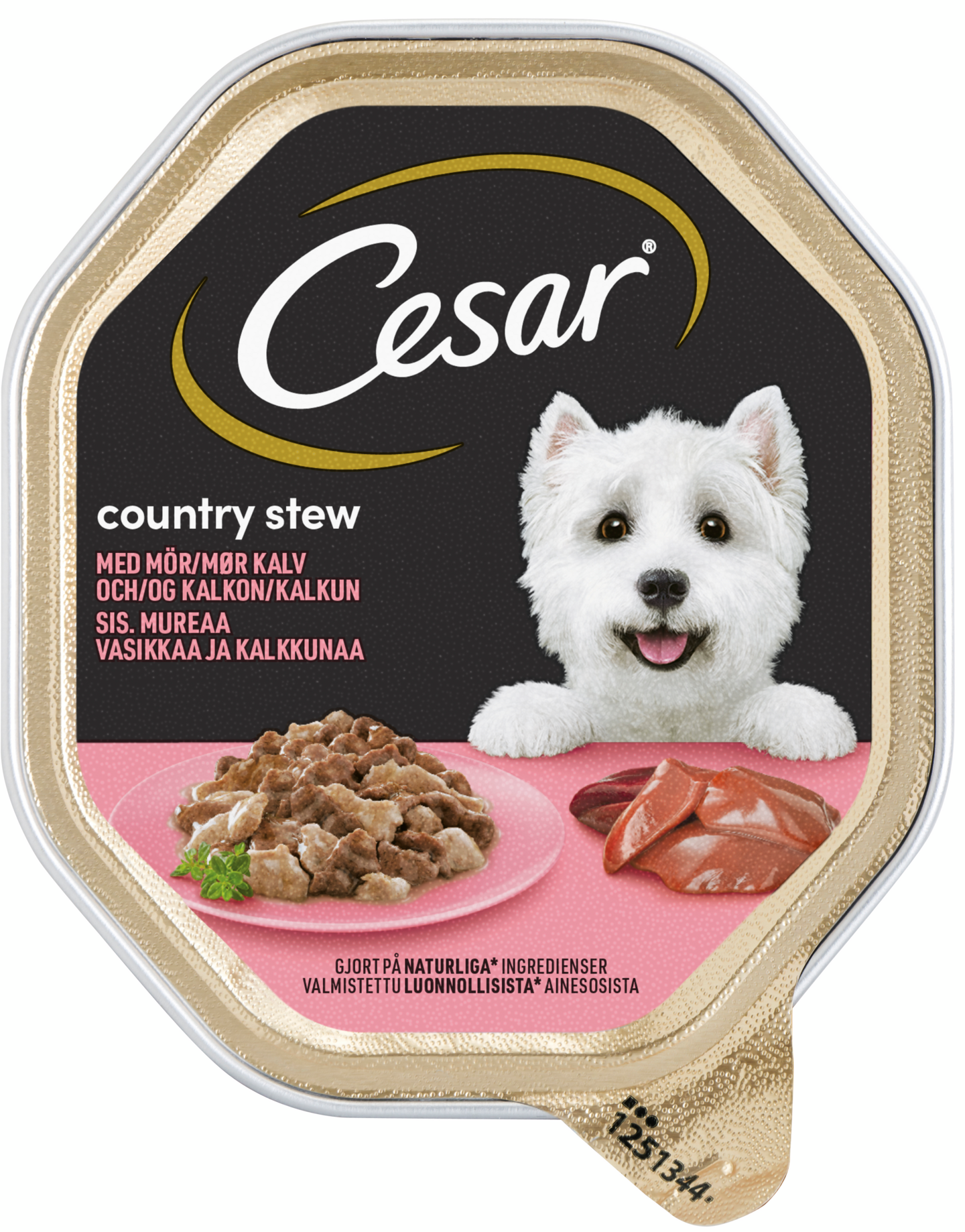 CESAR® -ateriat valmistetaan kaikkein parhaista raaka-aineista. Ateriat sisältävät runsaasti meheviä lihapaloja sekä tarkoin valikoituja raikkaita kasviksia maukkaissa hyytelöissä, murekkeissa ja kastikkeissa. Jokaisessa ateriassa on koirallesi tärkeää lihaa jopa 60 %. CESAR® –aterioista koirasi saa kaikki tarpeelliset ravintoaineet ja ne täyttävät päivittäisen energiatarpeen. Monipuolisen CESAR® -valikoiman ansiosta voit tarjota vaihtelua koirasi ruokavalioon.