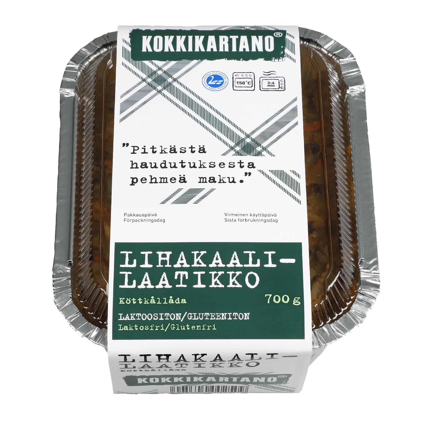 Kokkikartanon lihakaalilaatikko on kotoisa perinteinen arkiruoka, jossa maistuu Snellmanin suomalainen naudanliha. On siinä myös reippaasti kotimaisia kasviksia: kaalia, porkkanaa ja sipulia. Kaalilaatikko on kruunattu siirapilla, joka tuo siihen juuri oikean makeuden.