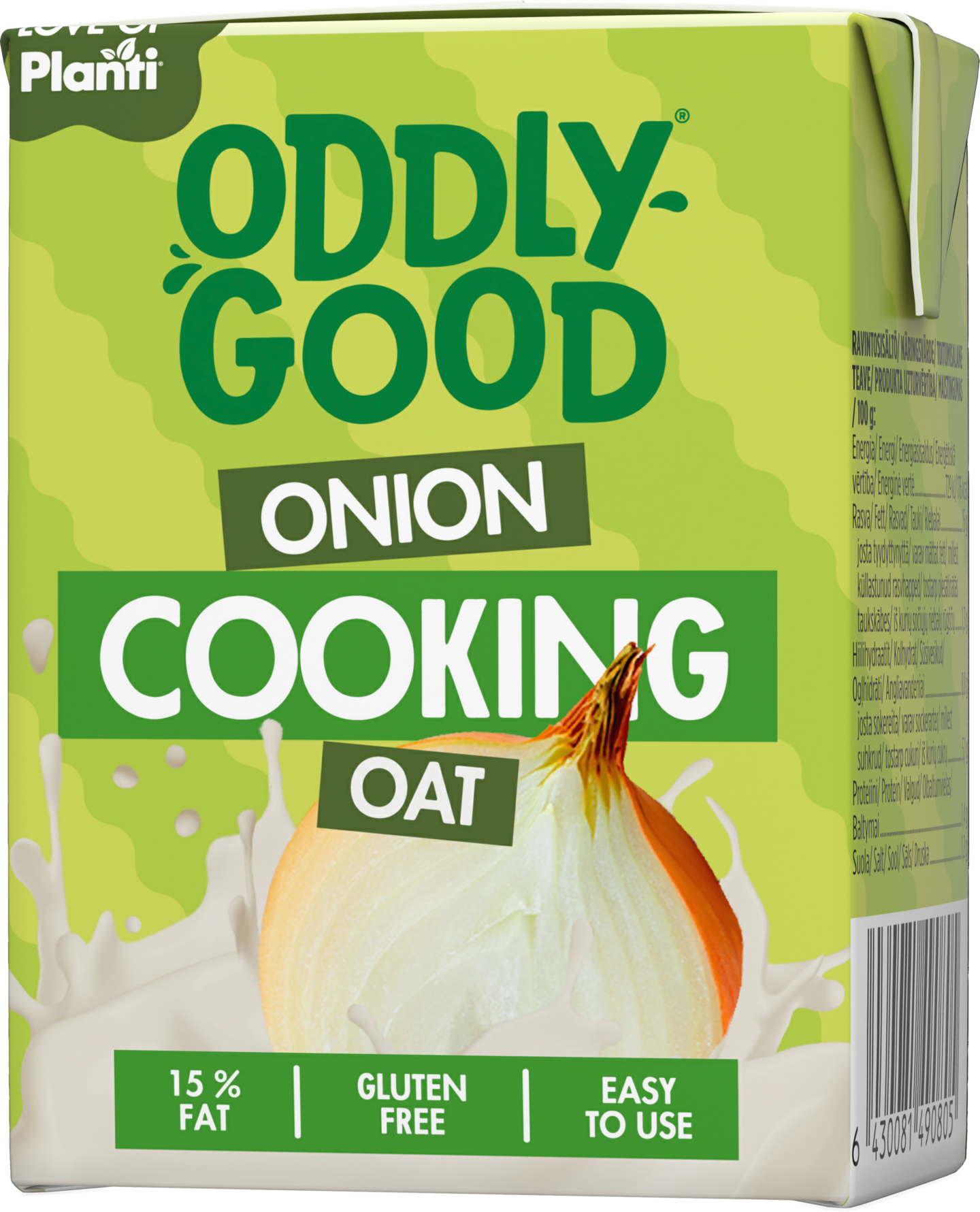Oddlygood® Cooking Oat sipuli tuo kauran pehmeyttä kokkailuun - nyt gluteenittomana! Tämä monen kokkaajan luottotuote on ollut aiemmin saatavilla nimellä Oddlygood® Planti Cooking Oat sipuli. Nyt tuote on siirtynyt Oddlygoodin alle - ja on samalla muuttunut gluteenittomaksi. Käytä kuin maustettua ruokakermaa, kun haluat saada sipulin aromikkuutta ruokaan. Cooking Oat tuo täyteläistä makua keittoihin ja pastakastikkeisiin ja kestää hyvin myös hauduttamista. Sillä teet myös mehevät piirakat. Kokkailemisiin!
