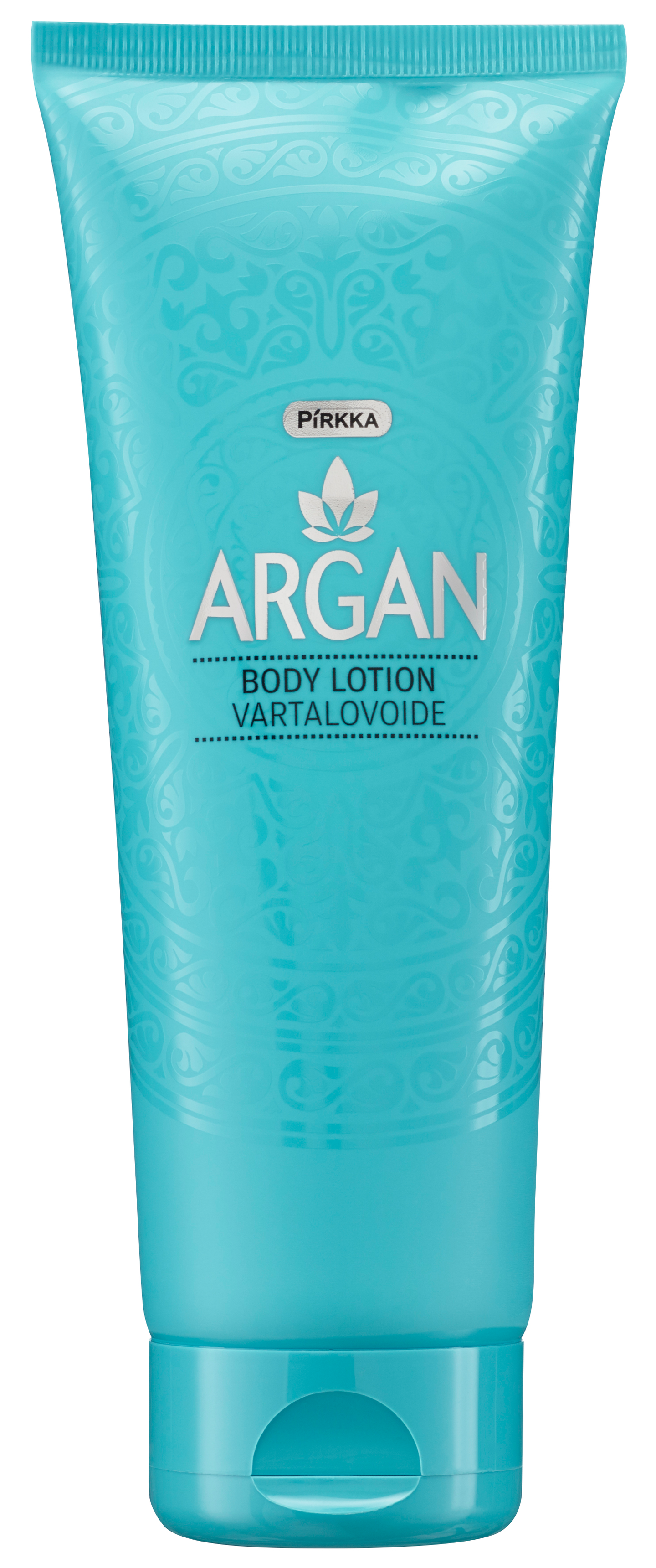 Ravitseva, pehmeä Pirkka Argan vartalovoide sisältää luonnon arganöljyä, karitevoita ja hyaluronihappoa. Mieto tuoksu.