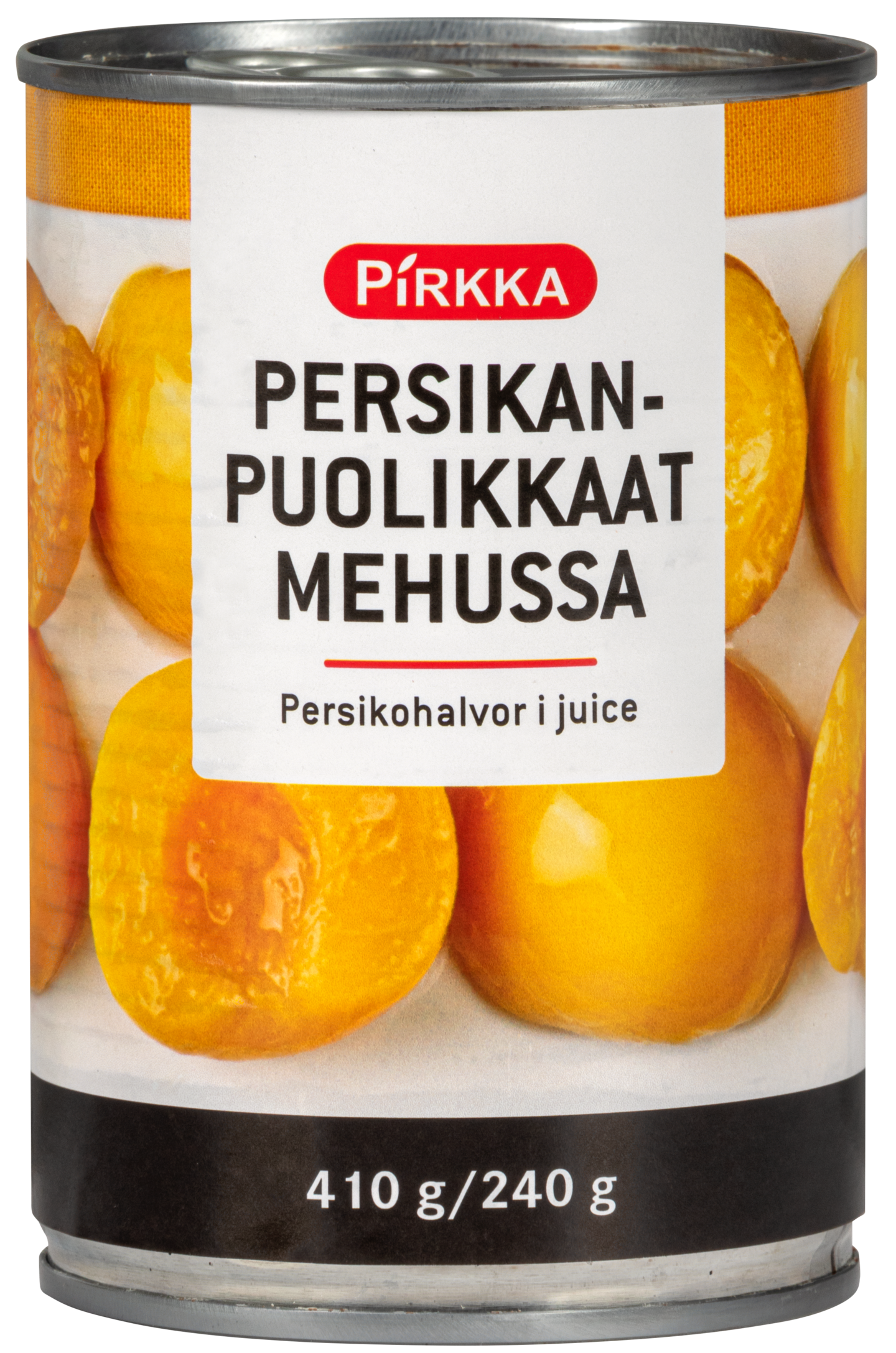 Pirkka persikanpuolikkaat mehussa 410g/240g