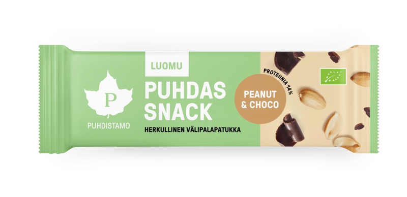 Puhdas Snack on herkullinen välipalapatukka, joka on valmistettu ravitsevista luomusiemenistä ja pähkinöistä. Patukka on makeutettu täyteläisellä taatelisiirapilla, maustettu pehmeällä maapähkinävoilla ja viimeistelty suussa sulavalla suklaalla. Täydellinen herkkuhetki luonnollisesti!