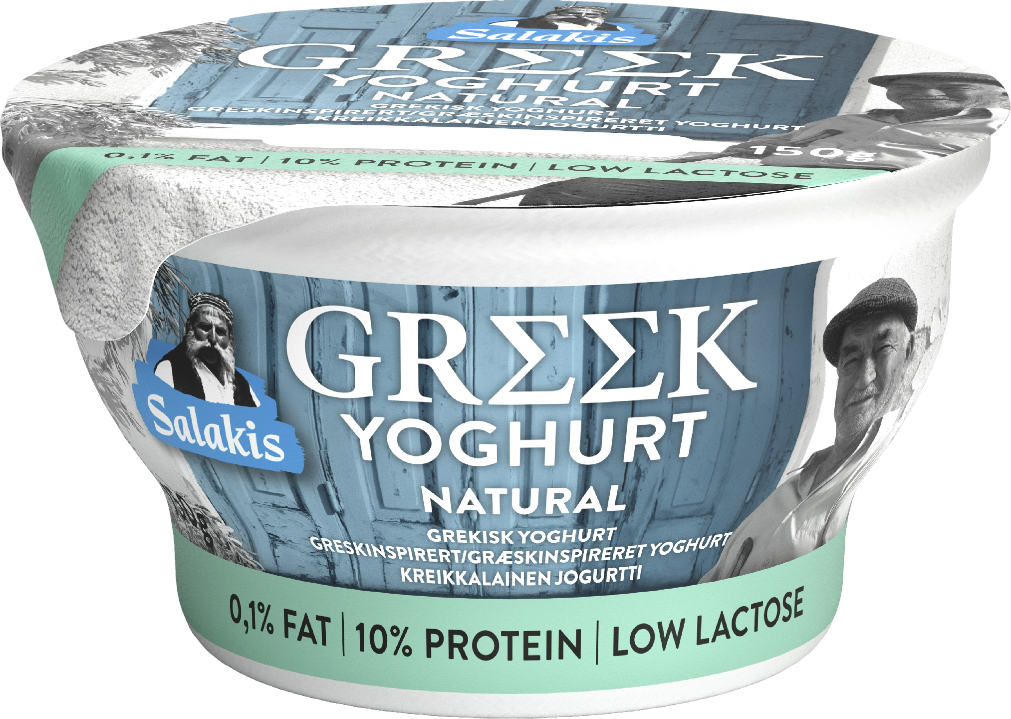 Kreikkalainen jogurtti, joka sisältää vain 0,1 % rasvaa ja 10 % proteiinia. Tuote on vähälaktoosinen.