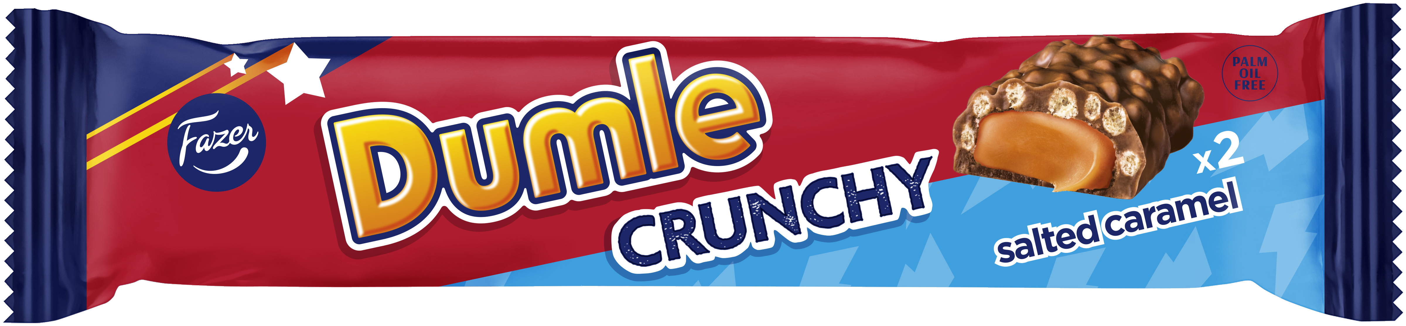 Dumle on rakastettu klassikko, joka on yhdistänyt meitä sukupolvien ajan. Dumle Crunchy Salted Caramel -suklaapatukassa pehmeä suolainen toffeetäyte maitosuklaa ja suolaiset vehnäkrispit takaavat makuelämyksen, joka taltuttaa isommankin makean nälän. Noudatamme kaakaonhankinnassamme Fazerin kaakaovisiota. Lue lisää www.fazercocoavision.com. Patukassa on kaksi palaa, nauti yksin tai jaa herkkuhetki ystävän kanssa.