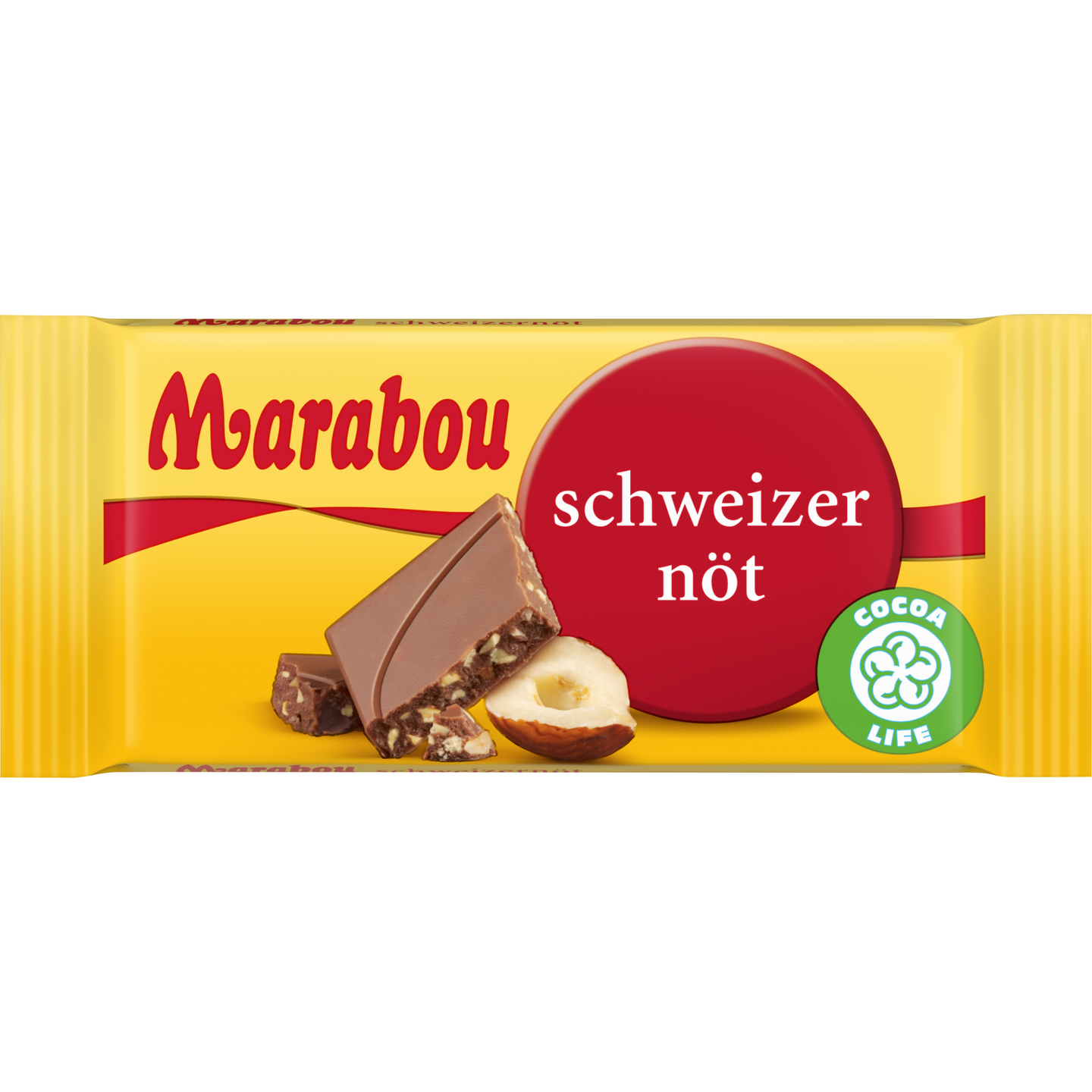 Marabou Schweizernöt - Marabou maitosuklaapatukka höystettynä tarkoin valikoiduilla, karkeaksi hienonnetuilla hasselpähkinöillä. Yksinkertaista, mutta niin hyvää. Marabou on Ruotsissa vuonna 1916 perustettu suklaatuotemerkki, jonka tuotteet ovat jo sukupolvien ajan tuoneet iloa ja herkullisuutta perheiden arkeen ja juhlaan. Nauti suklaasta menossa tai kotona rentoutuen. Kaikki Marabou suklaat ovat 100% vastuullisesti Cocoa Life -tuotettuja. Cocoa Life on oma maailmanlaajuinen vastuullisuusohjelmamme.