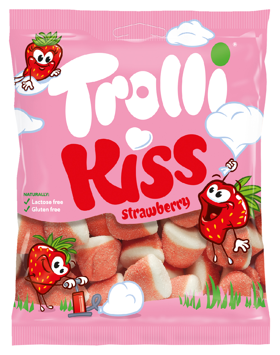 Pehmeitä mansikanmakuisia karkkisuukkoja ystävänpäivään! Hyytelökarkit on kuorrutettu ohuella vaahtokerroksella ja sokerilla.