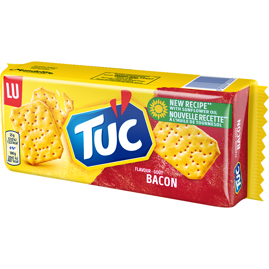 TUC Bacon - Ohuet ja rapeat uunissa paistetut pekonin makuiset suolakeksit. TUC on suolakeksien klassikko, jota on valmistettu jo vuodesta 1958. Nämä herkulliset suolakeksit sopivat pieneen snäkkäilyyn, evääksi retkelle tai suolaisena tarjoiluna juhlissa!