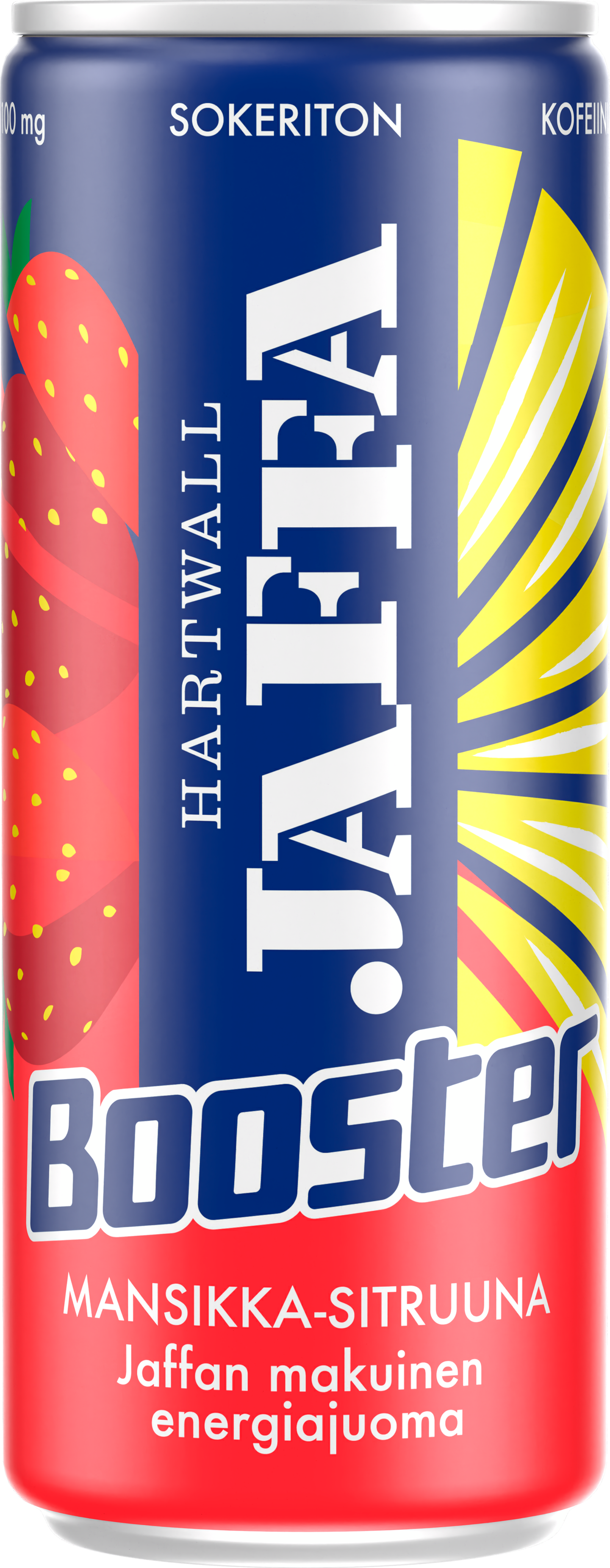 Jaffa Booster Mansikka-Sitruuna on raikas energiajuoma, jonka maku perustuu tuttuun Jaffan virvoitusjuomamakuun. Herkullinen mansikan ja sitruunan makuinen juoma yhdistää energiajuoman ja virvoitusjuoman parhaat puolet: se sisältää 30 mg/100 ml luontaista kofeiinia ja piristäviä B-vitamiineja, mutta maistuu aivan raikkaalta virvoitusjuomalta. Pakattu 0,33 l tölkkiin. Juomassa on korkea kofeiinipitoisuus (30 mg / 100 ml) eikä sitä suositella lapsille eikä raskaana oleville tai imettäville. Käyttösuositus enintään 4 tölkillistä päivässä.