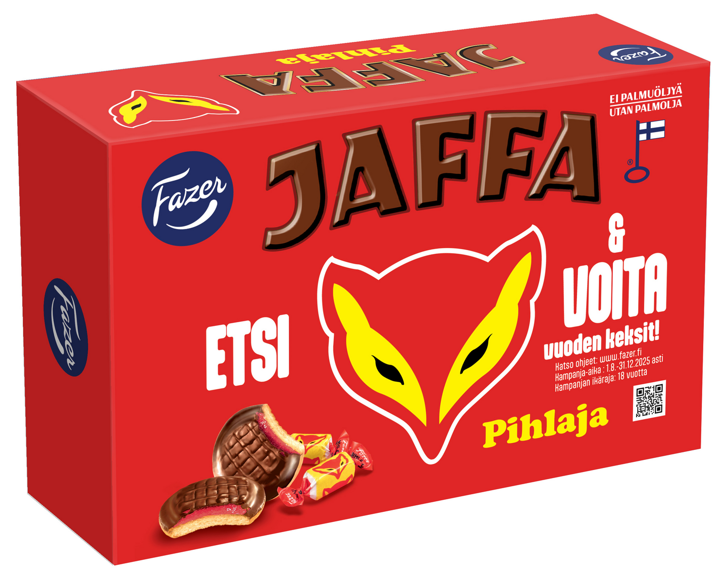 Fazer Pihlaja -keksissä kohtaa kaksi klassikkoa, Jaffa-keksi ja Pihlaja karkinmakuinen marmeladitäyte. Keksi ei sisällä palmuöljyä. Koko perheen suosikkikeksit maistuvat niin arkena kuin kuin juhlissa.
