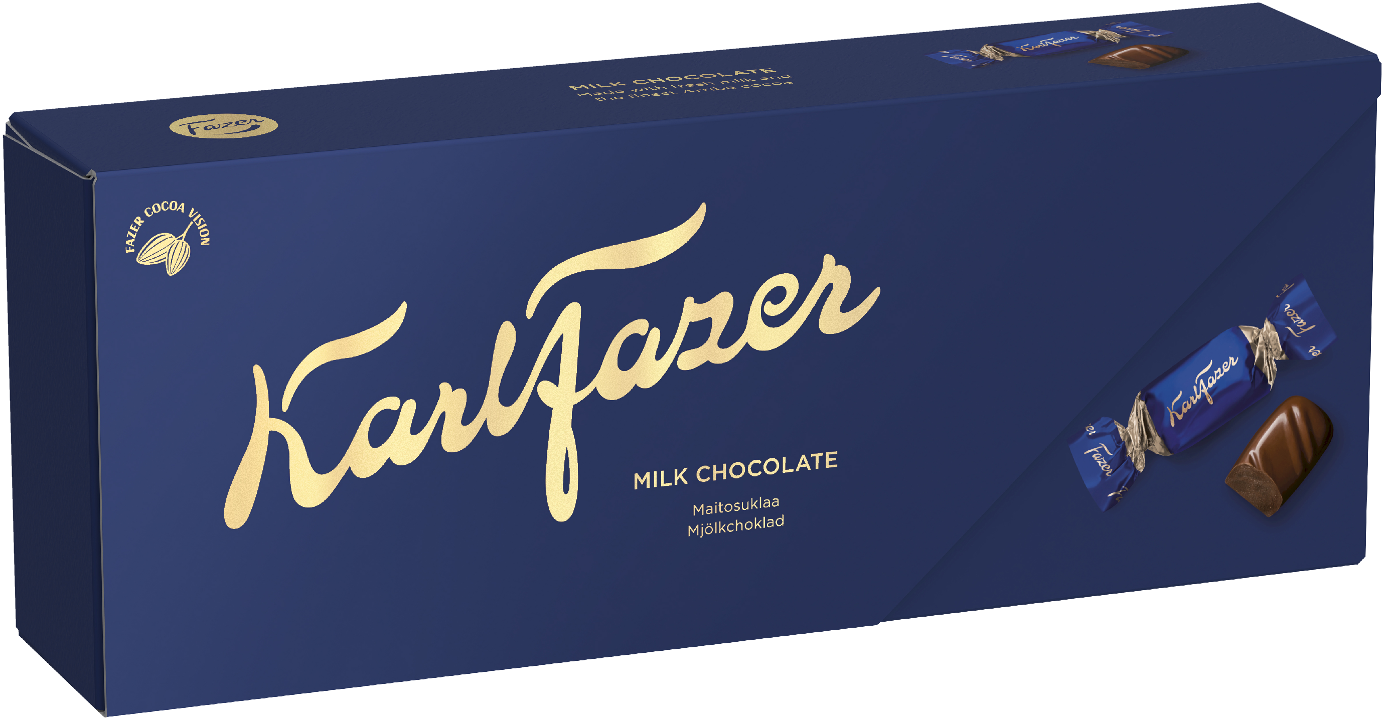 Suomen rakastetuin suklaa, jonka ainutlaatuisen täyteläisen maun ovat taanneet parhaat raaka-aineet jo vuodesta 1922 saakka. Tunnistat tämän aidosta maidosta valmistetun kansallisaarteemme maun lisäksi myös sinisestä kääreestä, jonka kultainen Karl Fazer -allekirjoitus toimii laadun takeena. Anna parhaisiin hetkiin sopiva rasia lahjaksi tai nautiskele ystävien kanssa. Noudatamme kaakaonhankinnassamme Fazerin kaakaovisiota. Lue lisää www.fazercocoavision.com.