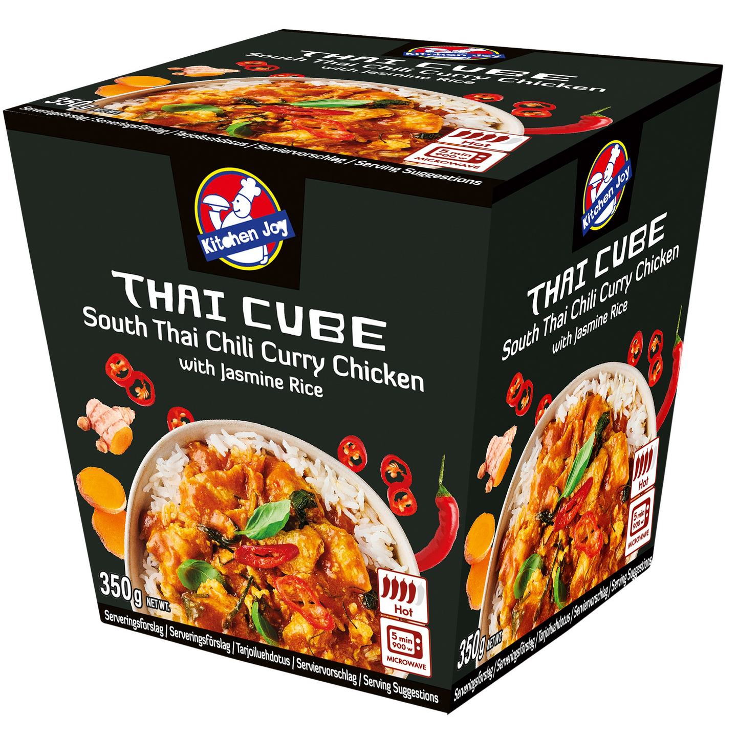Kitchen Joy South Thai Chili Chicken Curry Thai Cube jasmiiniriisillä vie sinut makumatkalle eteläiseen Thaimaahan. Herkullisen pehmeä curry yhdistyy tässä Thai Cubessa chilin poltteesen. Tuotteella on 4/5 chiliä, joten se sopii myös mausteisemman ruoan ystäville. Vain viisi minuuttia mikrossa ja autenttinen makumatka Thaimaahan voi alkaa! Löydät Kitchen Joy Thai Cubet pakastealtaasta!