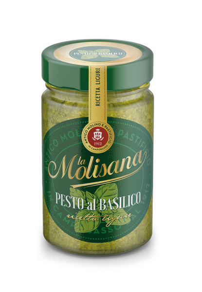Täyteläinen, sellaisenaan käytettävä vihreä La Molisanan Pesto al Basilico on valmistettu 100% italialaisesta basilikasta, ekstra-neitsytoliiviöljystä, cashewpähkinöistä, valkosipulista ja herkullisesta yhdistelmästä Parmigiano-Reggiano ja Pecorino Romano juustoja. Pesto al Basilico on enemmän kuin vain pastakastike, ja se käy sellaisenaan salaatinkastikkeisiin, leivän päälle, wrappeihin, pizzaan tai ihan mihin vaan johon kaipaat hieman italialaista twistiä.