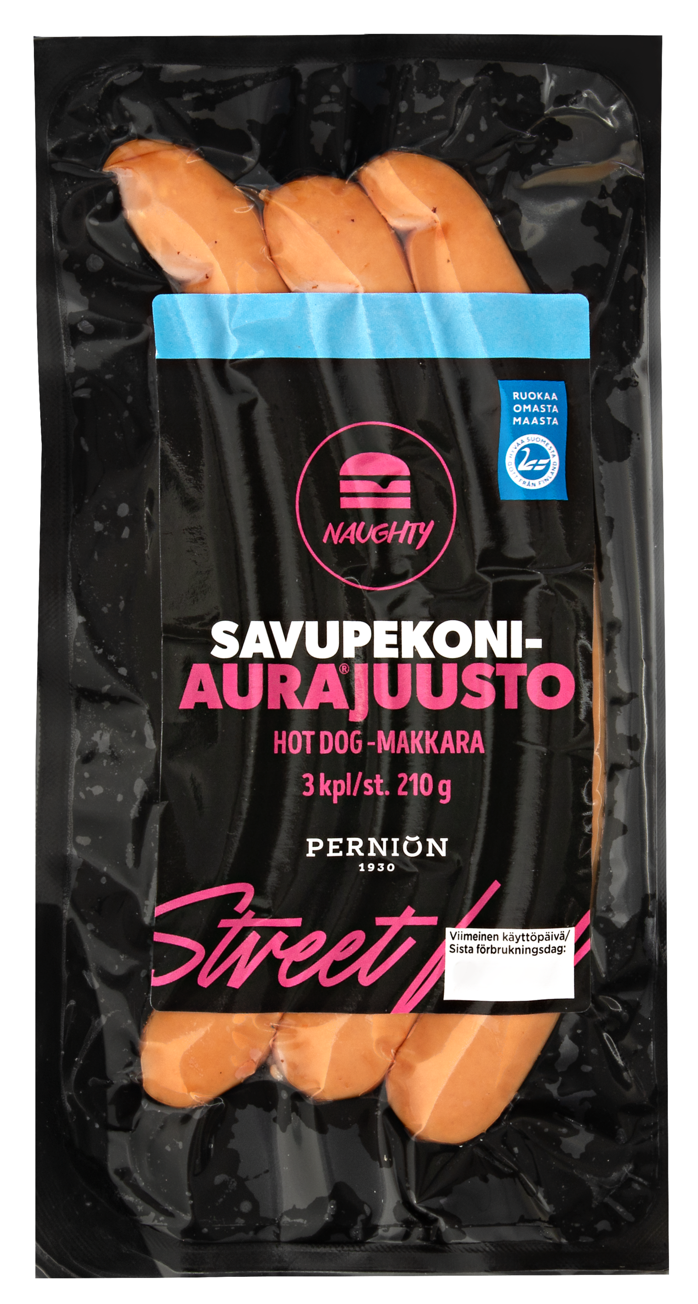 Naughty savupekoni-aurajuusto hot dog makkara 210g