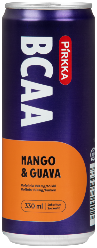 Mangon ja guavan makuinen Pirkka BCAA-juoma mango-guava on hiilihapotettu aminohappo-vitamiinijuoma, joka sisältää myös kofeiinia. Raikas janonsammuttaja on sokeriton ja makeutettu sukraloosilla. Yksi tölkki sisältää BCAA-aminohappoja 2500 mg ja kofeiinia 180 mg. Tuotteen valmistaa Finn Spring Oy Keski-Pohjanmaalla Lestijärvellä.