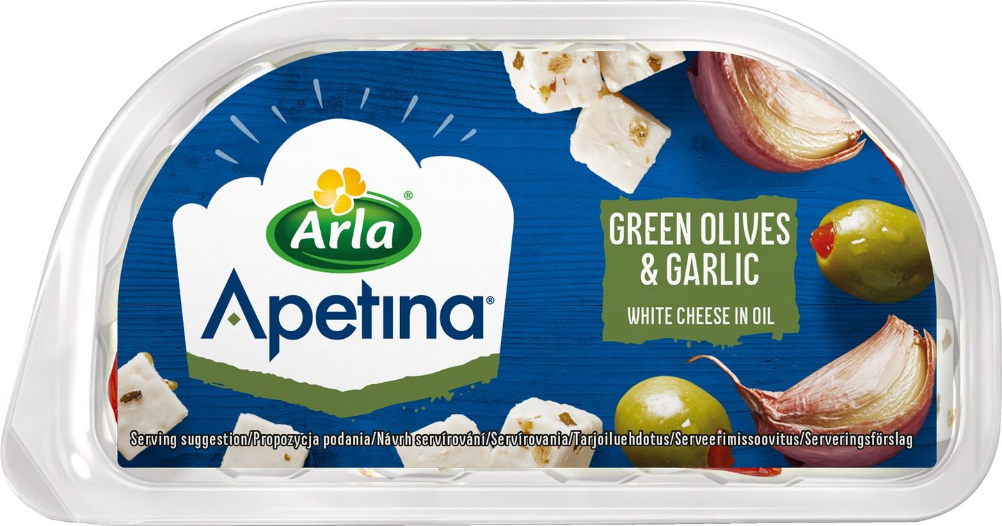 Arla apetina snackjuusto 100g/60g oliivi-valkosipuli