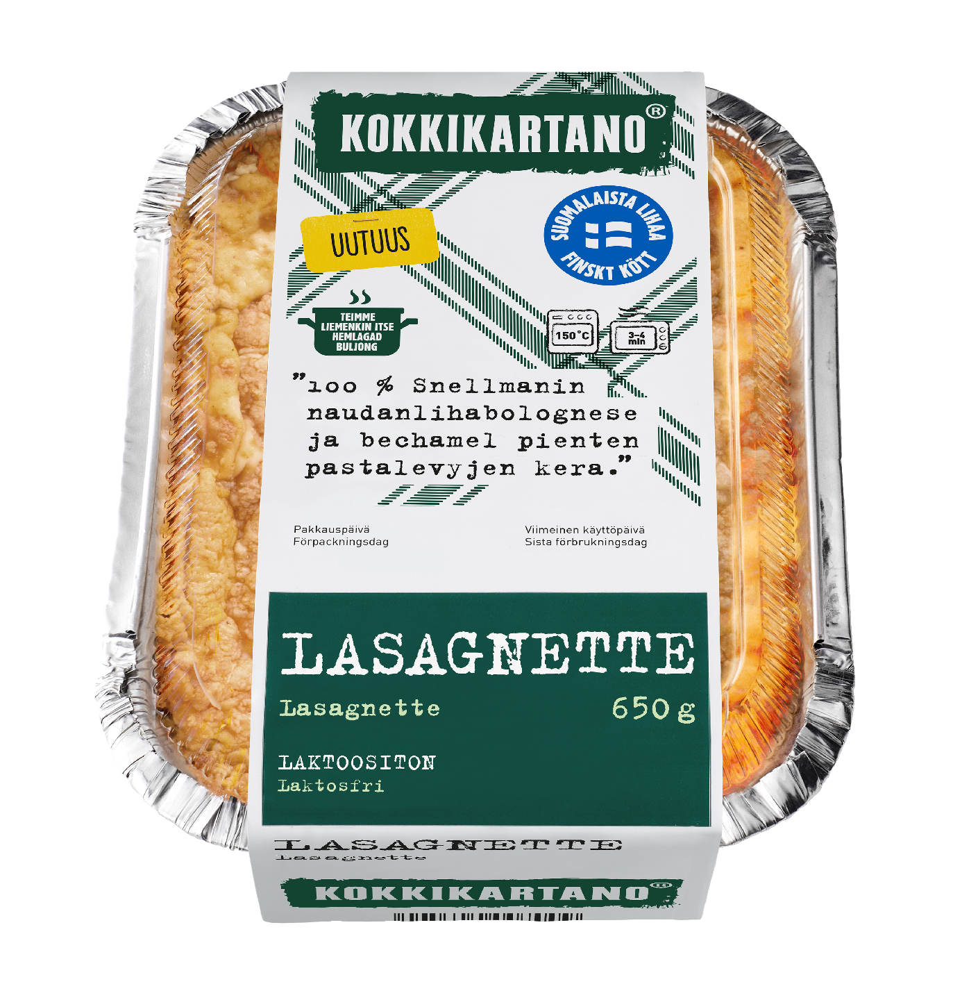 Tehtiin Kokkikartanolla vähän niin kuin lasagne, mutta ei ihan. Vuokaan laitettiin kermaista bechamel-kastiketta ja Snellmanin naudanlihaa. Tuli maistuvaa. Ero löytyy pastasta. Kokeile löytyykö myös mausta, meillä tykättiin kyllä.
