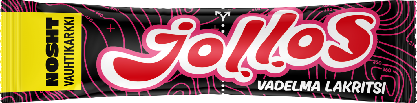 Jollos on kuin kiinteä energiageeli - eli siis supernopeasti imeytyvää energiaa ja elektrolyyttejä herkullisina suupaloina. Jollos Vauhtikarkit ovat täydellistä syötävää vauhdittamaan kovaa treeniä tai pitkää lenkkiä. Helppo seurata energiansaantia: Yhdessä palassa on 10 g hiilihydraatteja ja neljän palan pakkaus vastaa kahta energiageeliannosta. Helppo avata vauhdissa: vedä pakkaus auki katkoviivaa pitkin, niin pakkaus aukeaa aina samalla tavalla. Optimaalinen glukoosin ja fruktoosin suhde 2:1 tehostaa energian imeytymistä ja on helppo vatsalle. Elektrolyytit magnesium, kalium ja natrium auttavat tukemalla lihasten toimintaa rasituksen aikana. Kotimainen Avainlippu-tuote.