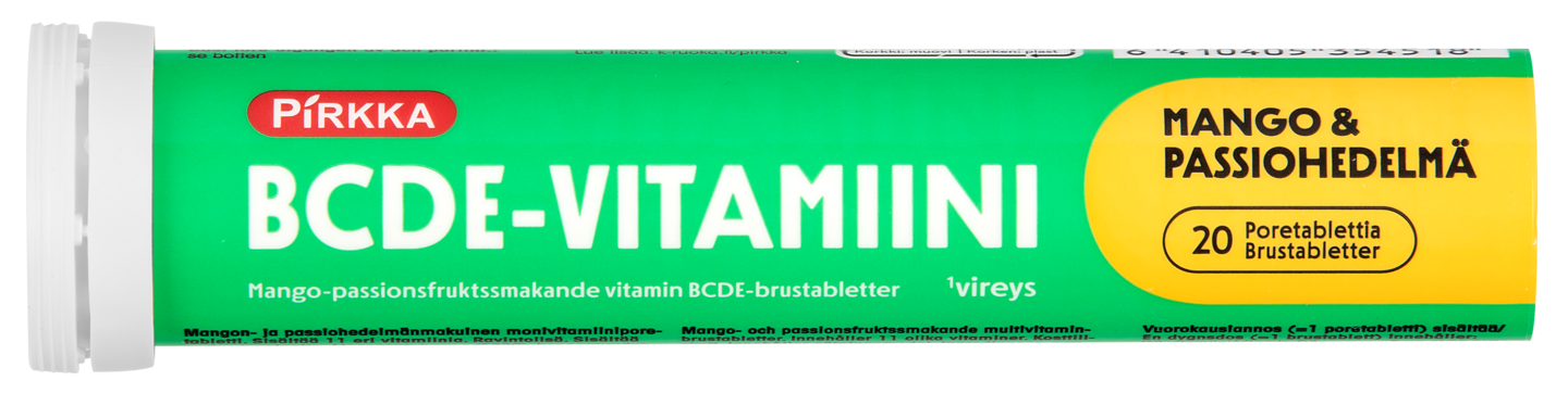 Raikas mango-passionin makuinen monivitamiinipore päivittäiseen käyttöön. Sisältää B-, C-, D- ja E-vitamiinia. Yksi poretabletti liuotettuna lasilliseen vettä päivässä. Ravintolisä ei korvaa monipuolista ja tasapainoista ruokavaliota eikä terveitä elämäntapoja.