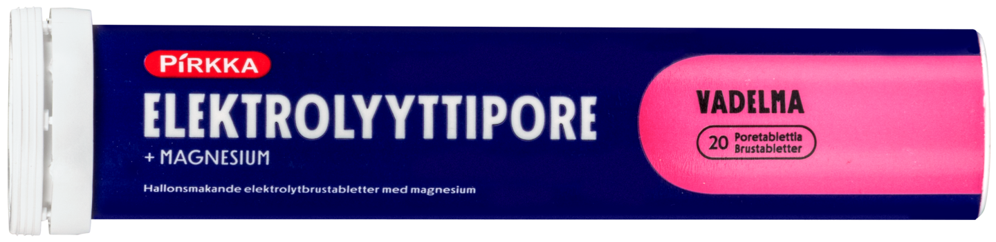Raikkaan vadelman makuinen Pirkka elektrolyyttipore vadelma on sokereita, kivennäisaineita ja magnesiumia sisältävä poretabletti neste- ja elektrolyyttitasapainon ylläpitoon. Sisältää keholle tärkeitä kivennäisaineita ja elektrolyyttejä nopeasti imeytyvässä muodossa. Valmista juoma tipauttamalla poretabletti kylmään veteen juomalasiin tai juomapulloon. Sopii erityisen hyvin nautittavaksi runsaan hikoilun jälkeen kuten urheilun, saunan, kuuman kesäpäivän tai flunssan jälkeen. Ravintolisä. Laktoositon. Gluteeniton. Vegaaninen.
