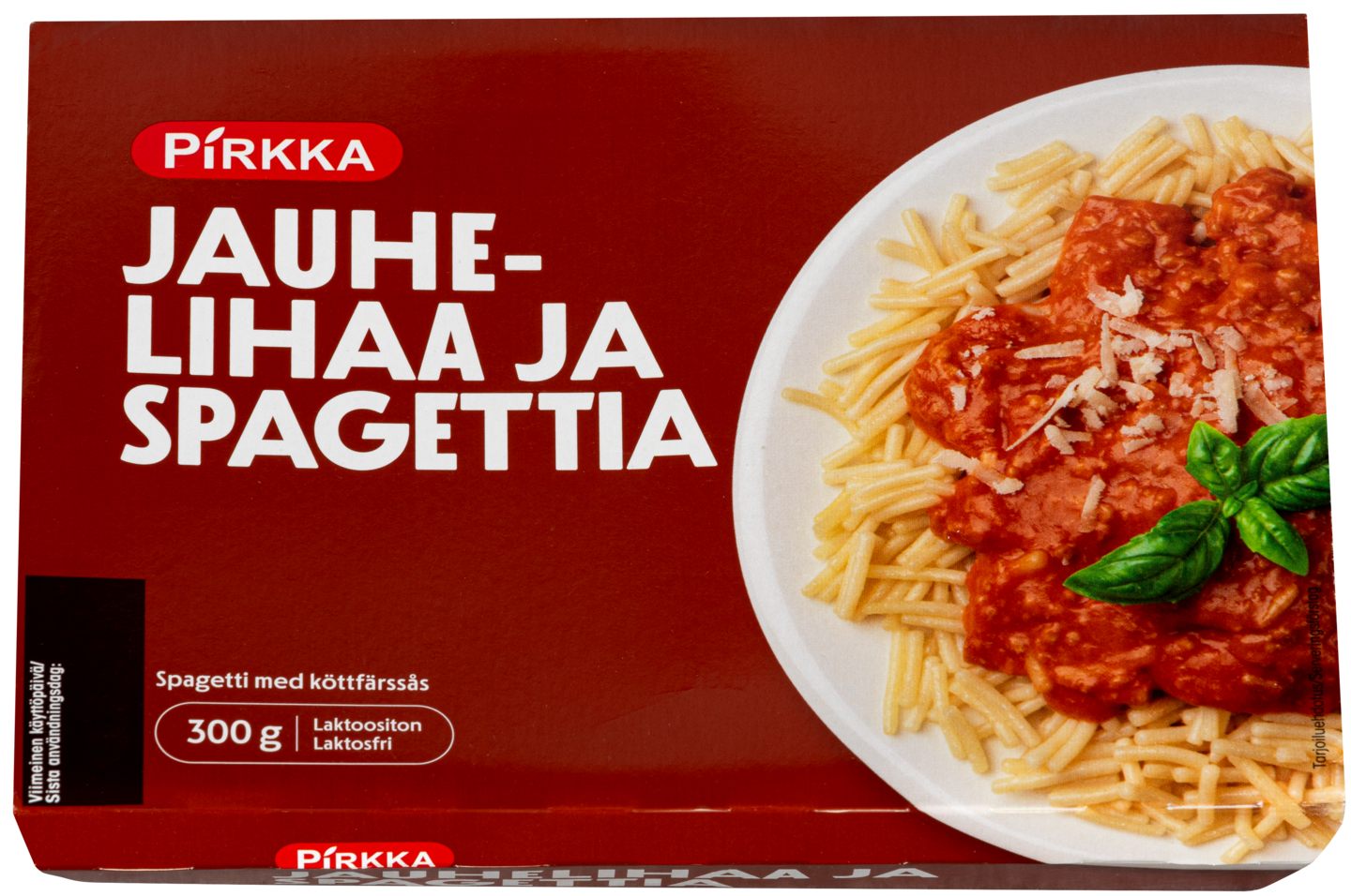 Pirkka jauhelihaa ja spagettia on perinteinen ja maukas ateria, joka on nopea lämmittää syötäväksi. Tuote on laktoositon.