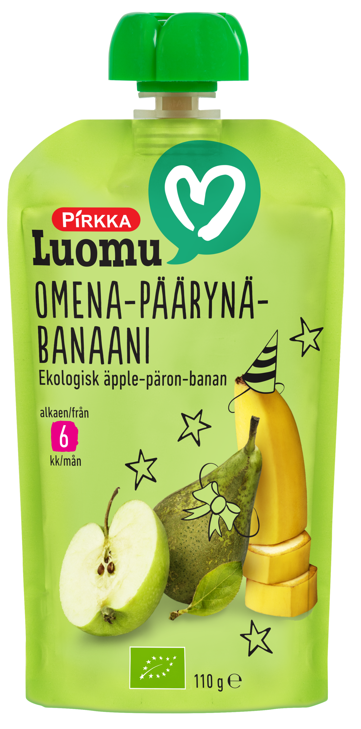 Pirkka Luomu omena-päärynä-banaanisose lapsille alkaen 6kk 110g