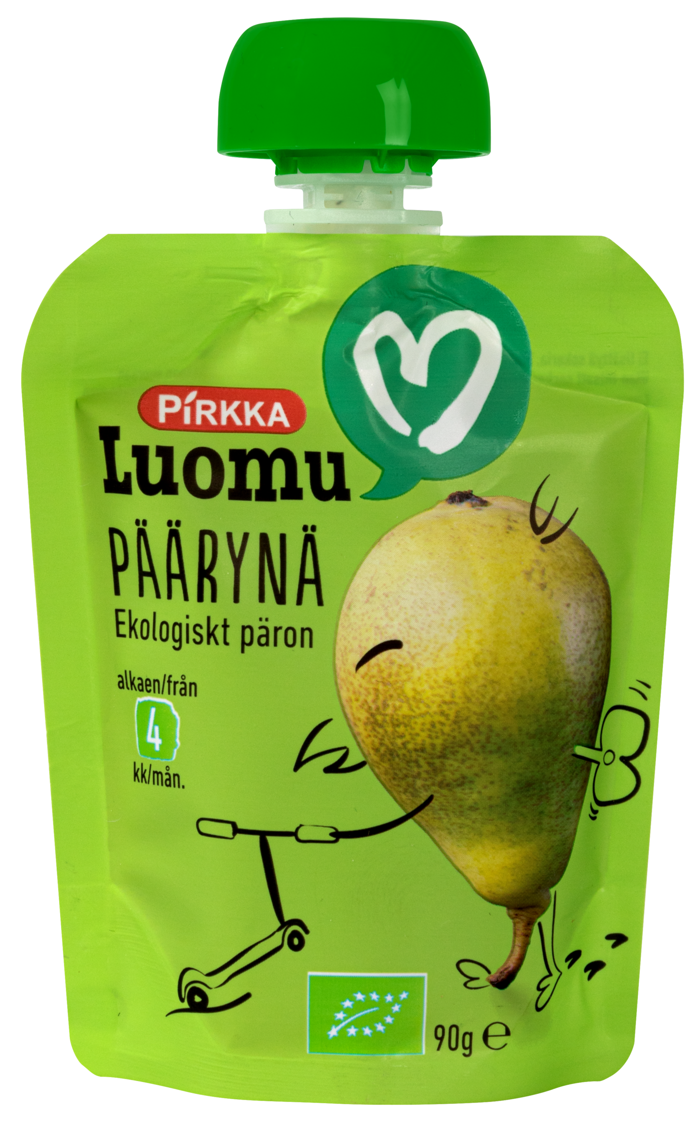 Pirkka Luomu päärynäsose sopii perheen pienimmille heti 4 kk alkaen. Vain luonnonmukaisesti viljeltyä päärynää sisältävä päärynäsose on maittava välipala, joka ei sisällä lisättyä sokeria. Tuote on pakattu kevyeen korkilliseen pussipakkaukseen, joka säilyy huoneenlämmössä. Käytön jälkeen pakkaus voidaan kierrättää muovinkeräykseen. Kokeile myös muita maistuvia Pirkka Luomu lastenruokia!